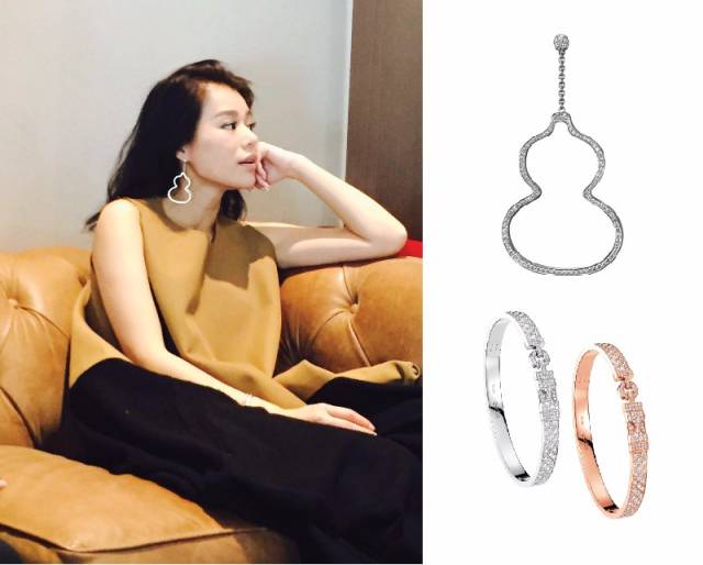 胡杏儿 in Qeelin Wulu系列大号白金镶钻石耳环以