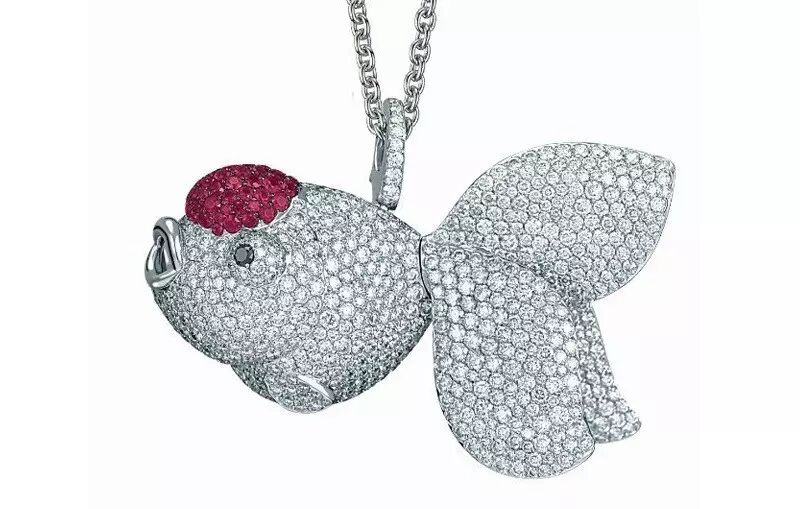 Qeelin Qin Qin 真爱之作系列融合中国文化韵味与巴黎的浪漫气息。Qin Qin系列色彩璀璨炫丽,体态婀娜多姿。系列中每个钻石金鱼的唇部都镶有微型磁石,当遇到「真爱」的另一条钻石金鱼靠近时便会自然「亲亲」,象征着幸运与珍贵的爱情。