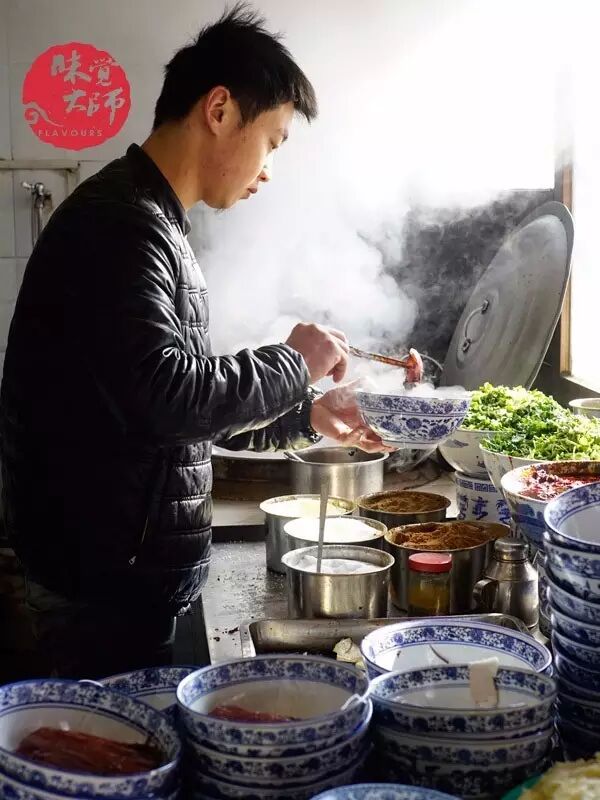 路边小吃店红彤彤的火苗舔着热气腾腾半人高的大锅,里面煮着各种鲜美的牛羊肉汤,锅盖一开,就升起一大片白色香喷喷的雾。就算天气冻人,男男女女还是满意地坐在路边小板凳上,掰着馍,吃着自己面前的一大碗。