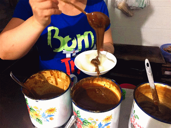 成品是褐色的浓稠液体,看起来细腻丝滑如同巧克力酱一般。
