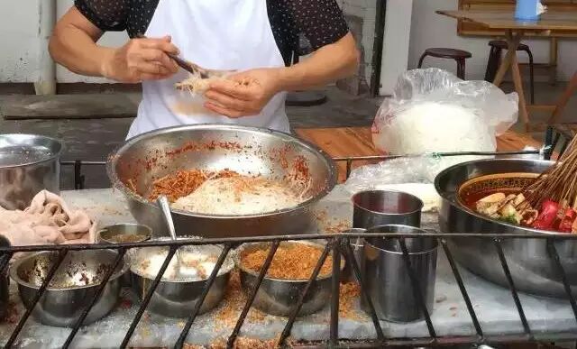 这家店又有点不同的是,不用自己拿菜,一般是老板炸好后全部打一圈,要什么直接给孃孃说,要加菜直接吼一句就ok。