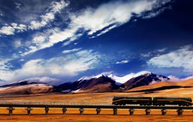 被誉为“天路”的青藏铁路,沿途的景色美不胜收。列车途经宁夏中卫沙坡头,沿着蜿蜒的黄河横穿该景区。此后,翻昆仑、踏雪山,唐古拉山口、沱沱河、可可西里都在列车的窗外经过。