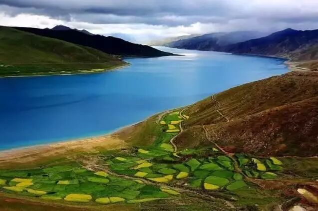 羊卓雍错:羊卓雍错与纳木错、玛旁雍错并称西藏三大圣湖,藏语意思为“碧玉湖”。
