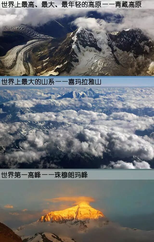 珠穆朗玛峰:珠穆朗玛,藏语意为“圣母”,它是世界最高大的山系喜马拉雅山的主峰,海拔8,848.13米,为世界第一高峰。