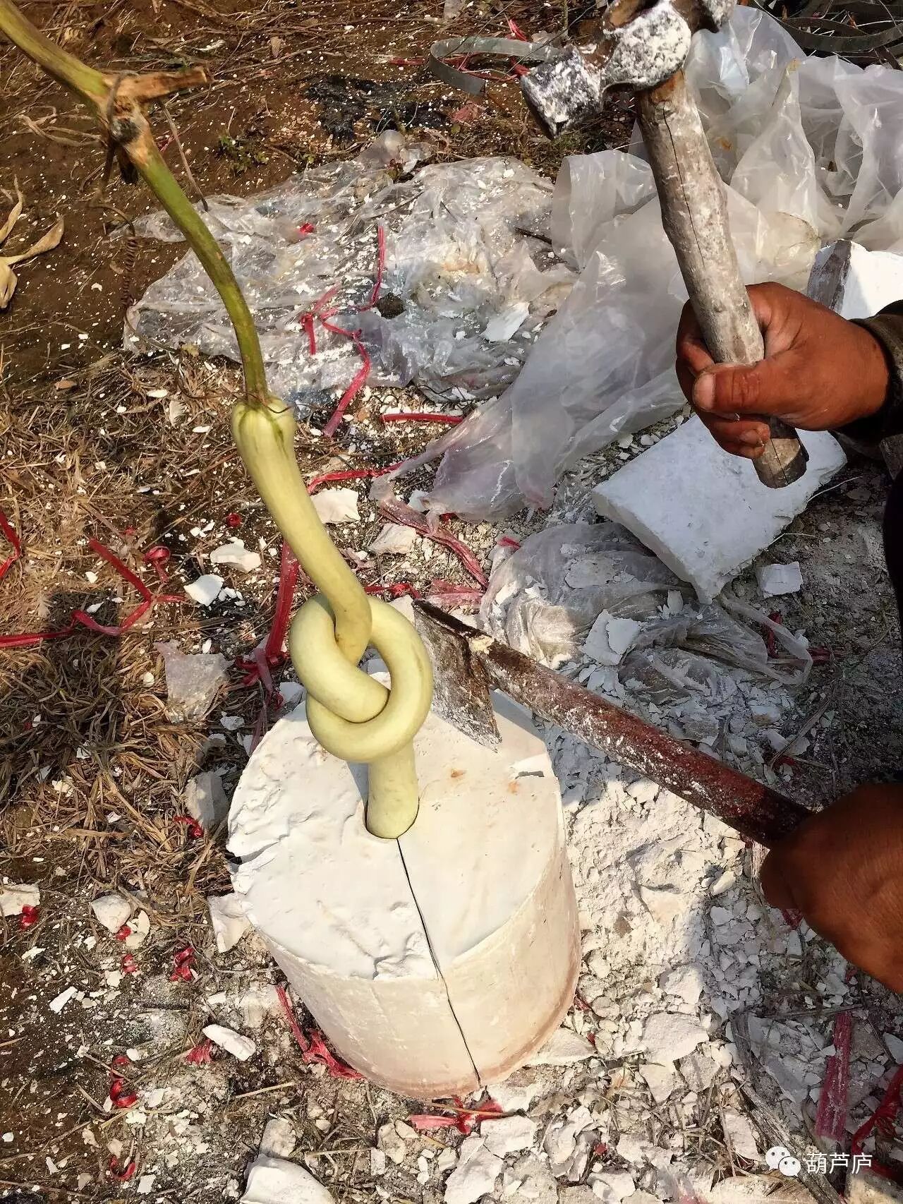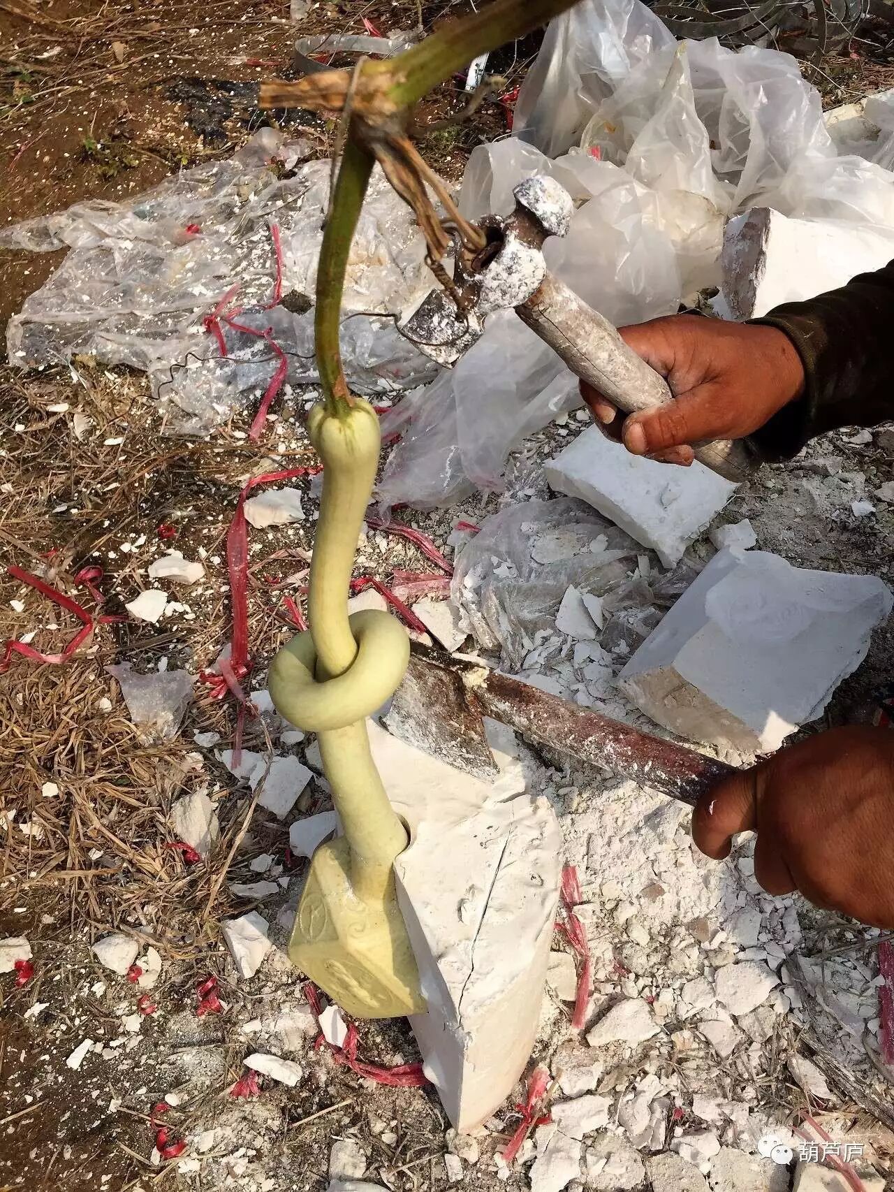 开模是很有讲究的!要用錾子錾开石膏模,还不能损坏葫芦!