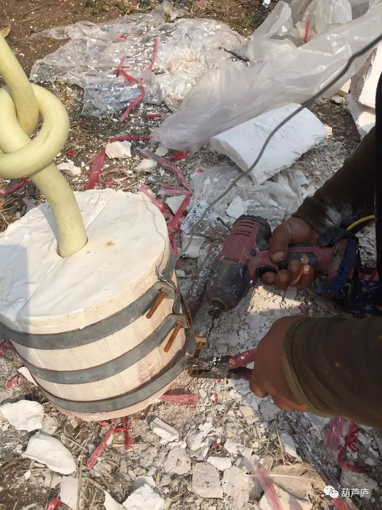 首先要打开铁箍,铁箍是用来箍住石膏的!做好的铁箍可以重复使用!