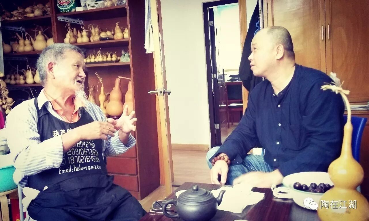 尽管黄阿金年事已高,但他耳聪目明、精神矍铄,说起话来妙语连珠,活脱脱一个“老顽童”式的“段子手”。自小喜爱美术,经常和小他三岁的胞弟、画家黄阿忠一起捏泥巴、剪纸、画画。“画着画着,不对了,弟弟越画越好,咋办?不甘心啊,于是暗下决心:你在纸上画画,我就要在葫芦上搞出点名堂!