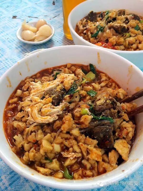 刘信卖泡馍,汤香肉烂价实,后增小炒泡馍,肉大馍筋,酸辣鲜香,名大振。坊间很多家做泡馍直接用泡馍汤,而真正地道的小炒泡馍一定要有lan牛肉的汤,味道出来是酸辣、料香、牛油气搭配均衡才为正道,正是这种霸气十足的味道让人欲罢不能。