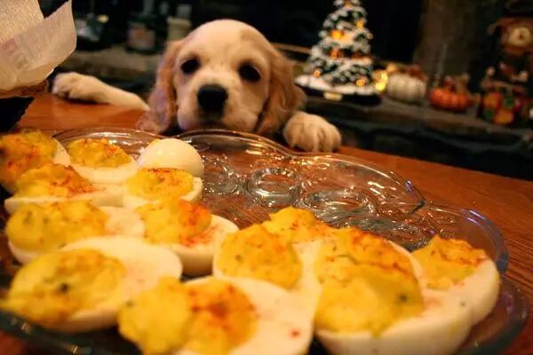 注意:以下图片为搞笑拍摄效果,并不是真的给狗狗吃这些。不建议给狗狗吃人类的食物。