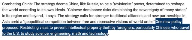 再回到上个月,,明确表达了对中国输送过来的STEM方向的留学生的戒备之心,要限制他们的签证发放。