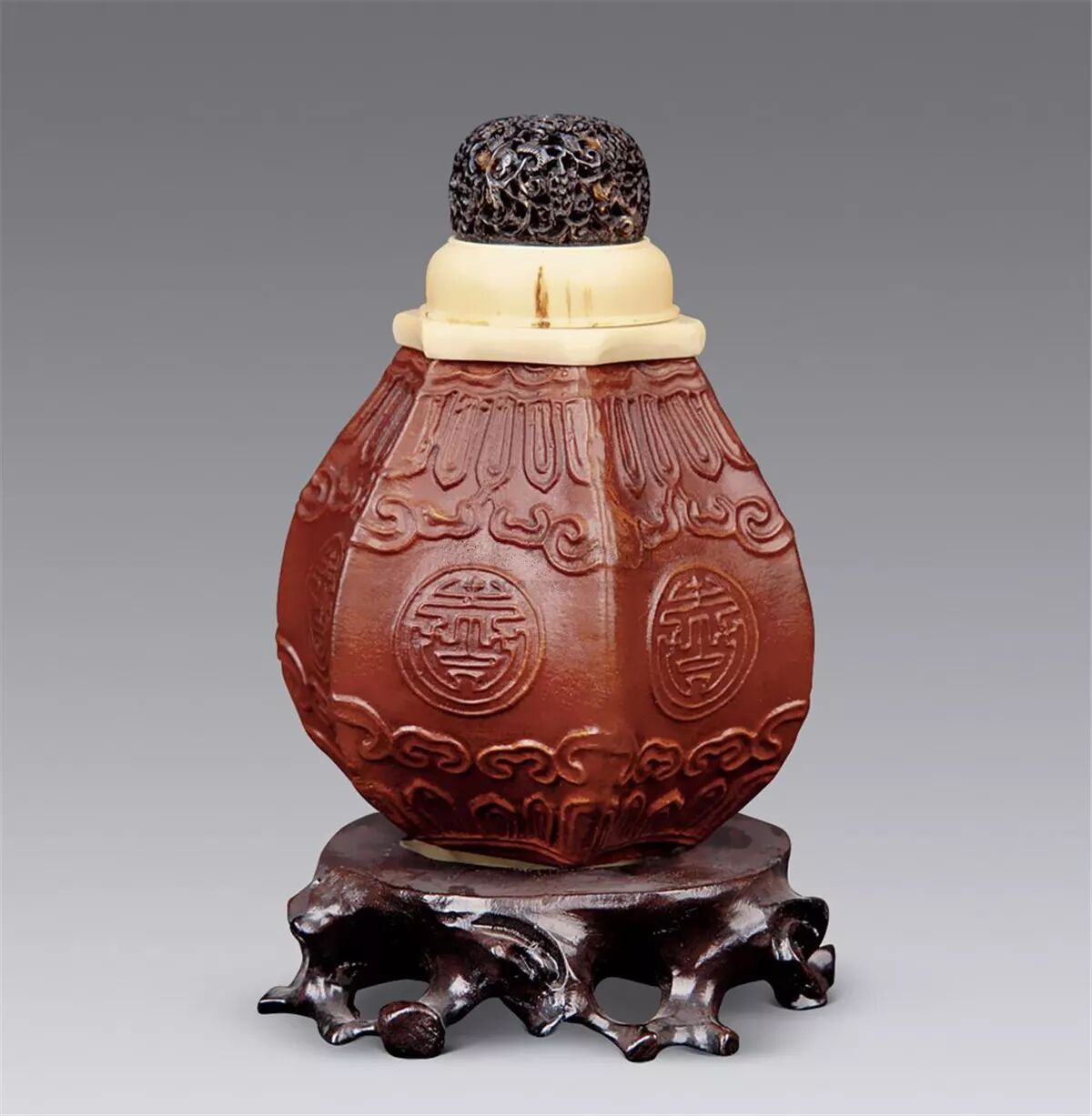 色泽指葫芦的皮色,也是指“四字原则”中的“紫、润”。葫芦的本色原为黄色,但随着时间的推移,其皮色会渐渐由浅变深,由黄变红,由红变紫。但想要真正的“紫、润”葫芦,需要把玩者经过几十年乃至上百年的盘玩、摩挲。因此,愈是皮色发紫的葫芦,其历史就愈长,愈具收藏价值。