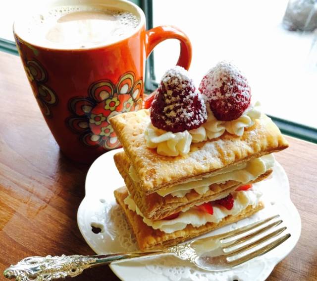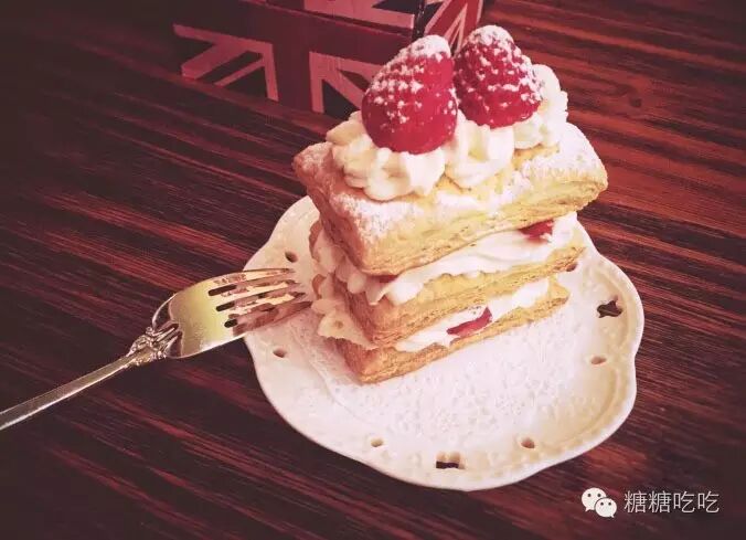 :,过多的装饰会影响口感,用最传统的做法,在松化的酥皮夹上鲜奶及幼滑的芝士酱,口感及松化及嫩滑于一身。保留了法式甜品的传统口感,又有日式的清新。焦糖酥皮包裹着进口淡奶,不会过于甜腻非常香浓。