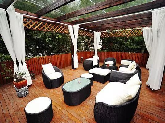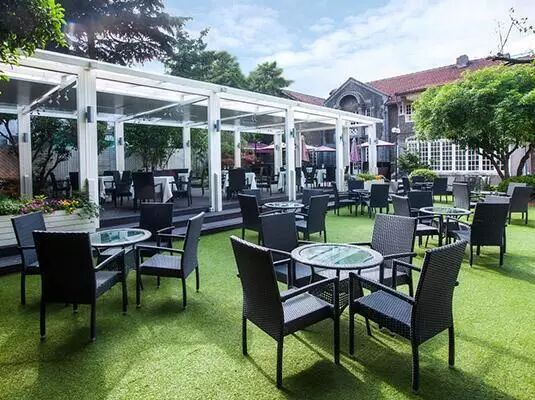 露天花园树影婆娑,掩盖了不少夏日的炎热,躲进大堂感受绿意清新!小巧精致的橱柜铺上植物再放上茶点,像个让人爱不释手的盆景。