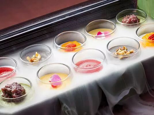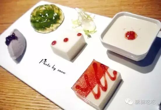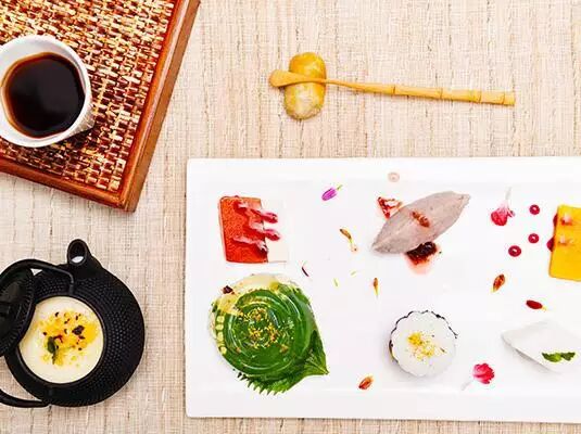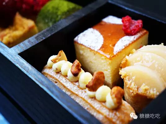 色彩丰富盛装盘中包含精致到令人心动的抹茶布丁、杏仁豆腐、芒果慕斯……入口细腻清爽,让人瞬间忘却炎热的夏天。