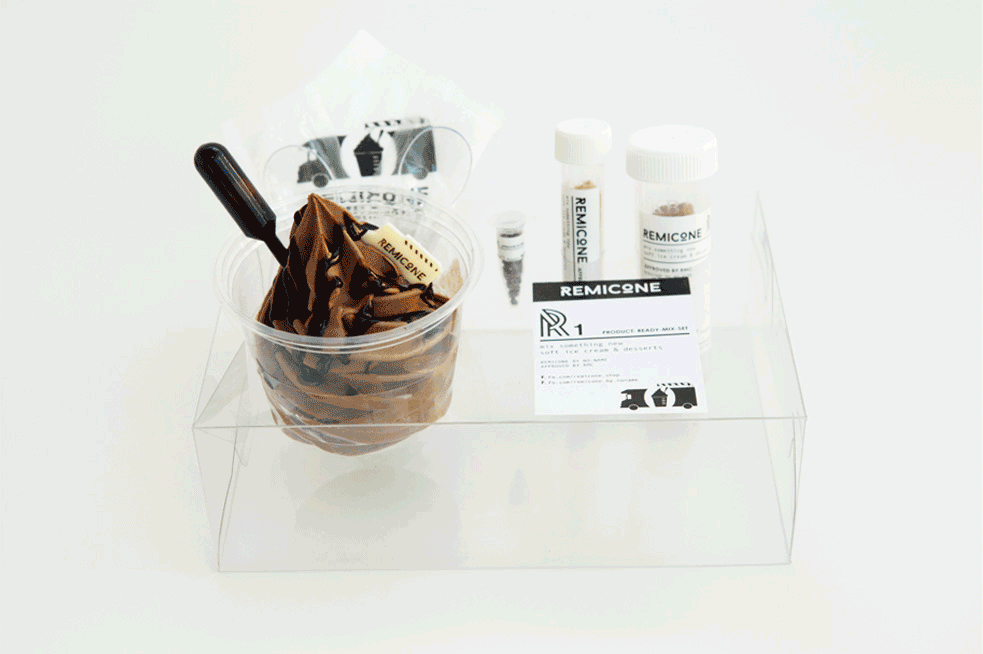 实验室外带套餐: REMICONE之所以火爆,除了始于颜值忠于味道,更重要的是他实验室的自由风格。 各类马卡龙和脆饼!多款冰淇淋配料让顾客任性挑选。