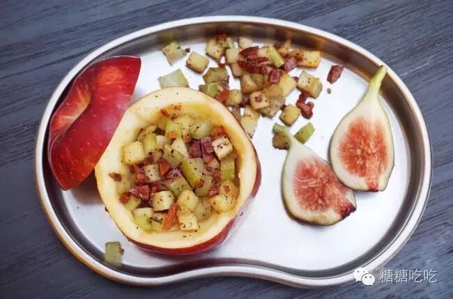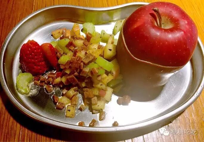 说这是一道小点,还不如说这是一个装置艺术,鲜红如心的蛇果静静的躺在金属弯月盘当中,就像童话里白雪公主吻下的那颗有毒却充满致命吸引力。