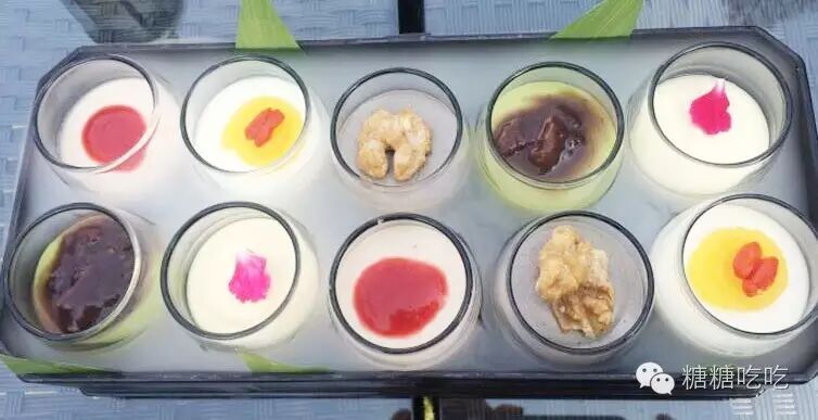 杏仁豆腐杏仁味浓郁,桂花糕叫桂花冻才更贴切,晶莹剔透,让人都不舍得下口。但最爱的还属龙珠奶冻,口感丝滑,淡淡的茉莉茶香,满口留香之感。