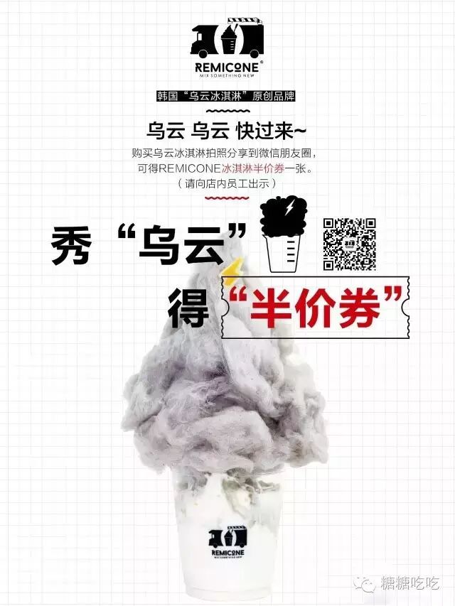 购买乌云冰激凌并拍照分享到微信朋友圈就可以获得一张REMICONE冰激凌半价券哟!还不赶快GO!