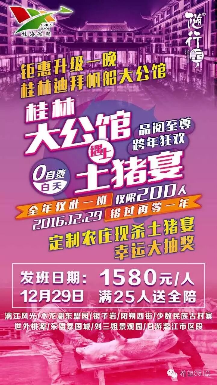 7、 本行程为纯玩无强制购物、购物随客意的行程,但其中部分景区及酒店为方便旅游者有自设的商场及购物场所,并非我社安排的旅游购物店,此类投诉我社无法受理,敬请谅解;如在自由活动期间有购物需求,请自行前往;当地购物时请慎重考虑,把握好质量与价格,务必索要发票,当地特产有罗汉果、桂圆肉、桂花香水、桂林三宝(辣椒酱、豆腐乳、三花酒)、白果、桂花糕……请到正规大型超市购买,切忌到路边小店购买假冒伪劣产品。