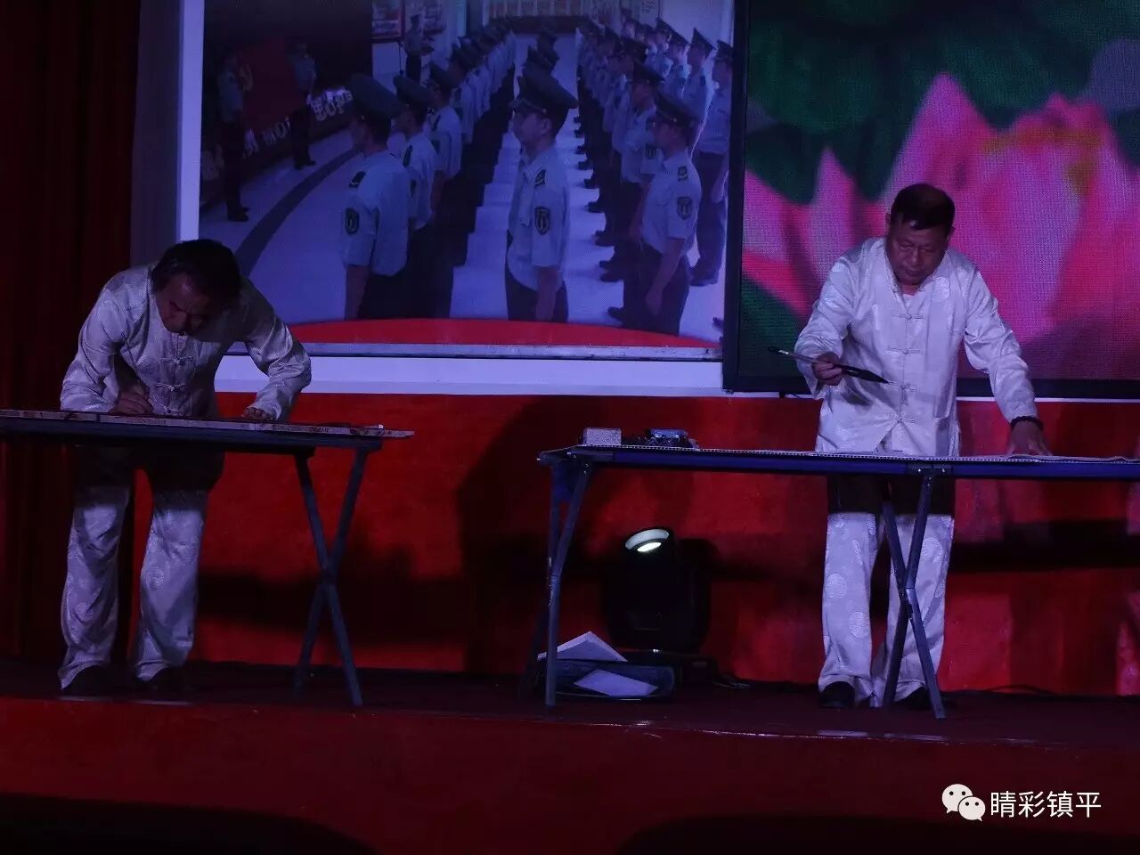 在驻镇某部队的大会礼堂内,葫芦丝协会会员们为驻镇官兵送去了一道道“文化大餐”,驻镇部队战士们也表演了擒拿格斗等拿手好戏,军民同乐,鱼水情深,军爱民来民拥军,军民团结一家亲。(王果 2017.8.1)
