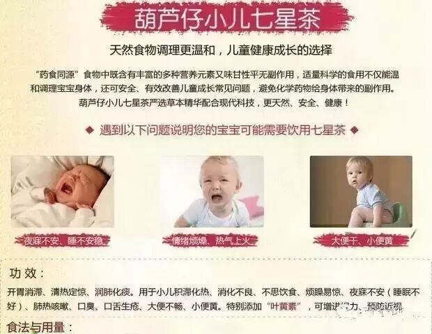 开胃消滞、清热定惊、化痰。用于小儿积滞化热、消化不良、不思饮食、烦躁易惊、夜寐不安(睡眠不好)、肺热咳嗽、口臭、口舌生疮、大便不畅、小便黄。【特别添加“叶黄素”,可增进视力、预防近视】食法与用量:每天两至三次;(0至1岁,每次半包;1-3岁,每次1包;3岁以上,每次2包;)用100ML温开水冲服