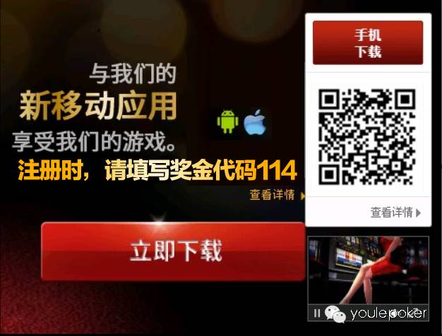 优乐扑克,PC端和安卓IOS移动端完美互通,全中文网络流畅!支持银行卡存取支付宝代存取!德州扑克、奥马哈、现金比赛、spin&go任你玩!下载地址请看下图(微信可能屏蔽请在浏览器中打开)或长按扫描图中二维码下载