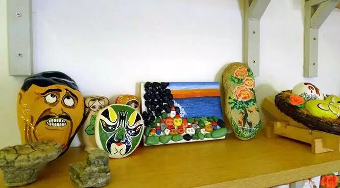 二、石屋:石头彩绘 、石头拼贴画、盘子画、盆景制作、刻章、饰品编结。