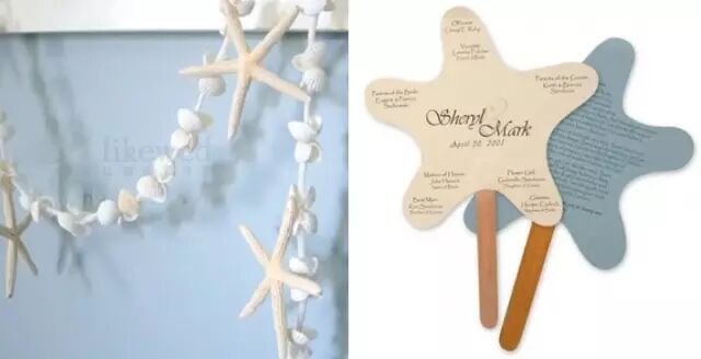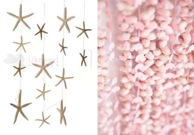 白手指海星花环。DIY小贴士:把海星一个个串起来,装饰婚礼现场。