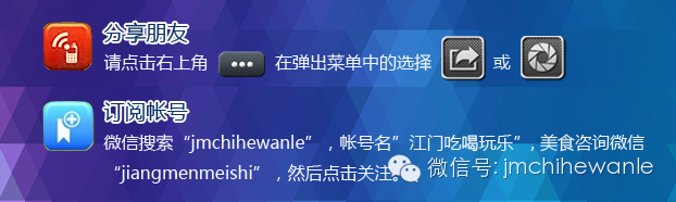 关注江门吃喝玩乐订阅号:jmchihewanle 进行回复
