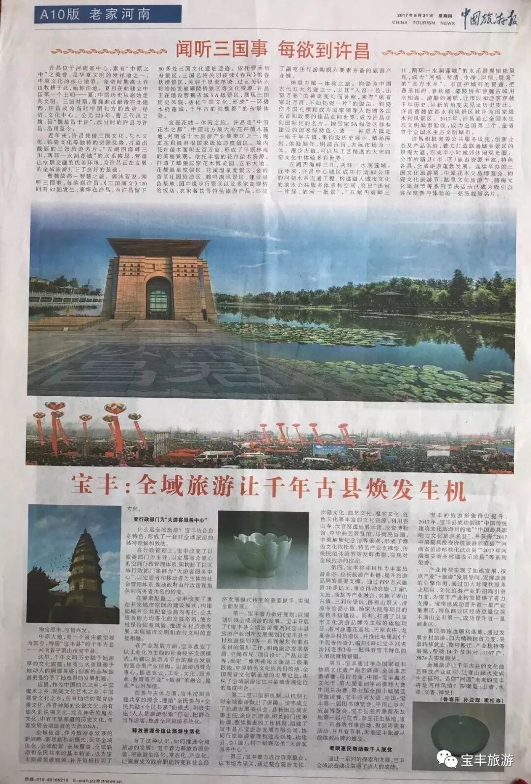 24、8月24日,《宝丰:全域旅游让千年古县焕发生机》的文章登上国家级报刊—中国旅游报。