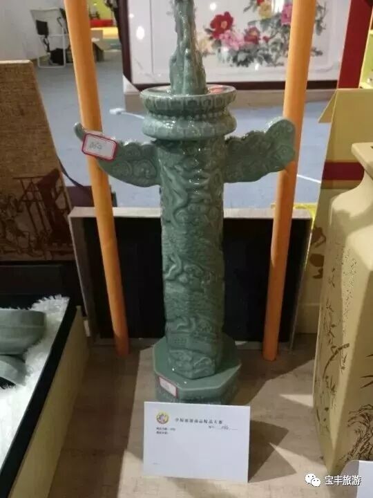 27、9月22日第五届中原旅游商品博览会上宝丰御赐兴宝汝瓷有限公司汝瓷作品“华标”荣获省级银奖、闹店镇福禄园葫芦种植基地精品加工葫芦荣获省级铜奖、大宋宫廷汝瓷有限公司作品“玉壶春”获省级优秀奖。
