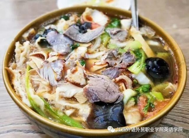 粉汤羊血是陕西关中地区汉族特色的传统小吃,粉汤羊血讲究“麻、辣、咸、香、光、嫩”。羊血鲜嫩爽滑,没有丝毫腥味,辣椒油让整个碗都是通红的,吃得嘴角发麻、满头大汗,感觉很是舒服。吃粉汤羊血,可以要了汤自己拿饼泡着吃,也可以掰成铜钱大小,交给大师傅来泡。