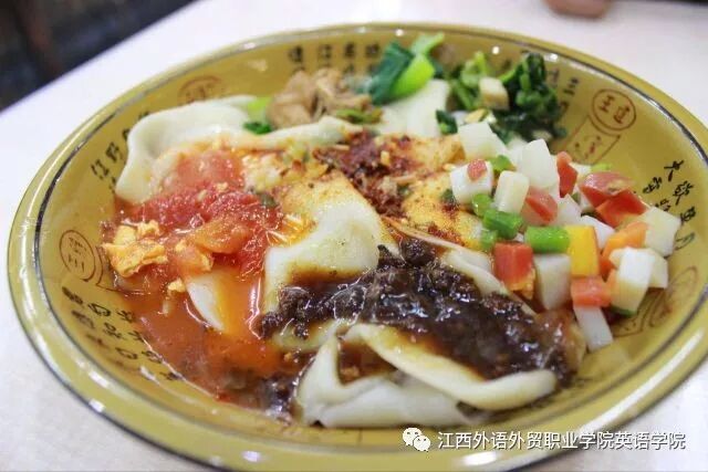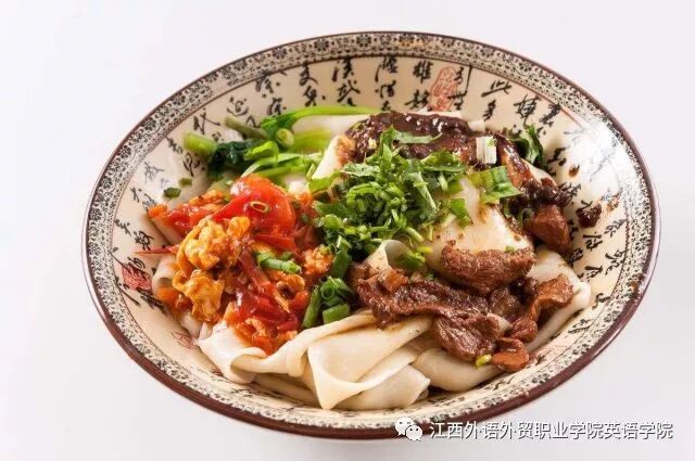 面食是西安人的日常饮食,陕西人有句话“油泼辣子biang biang面”,这个biang biang 面就是手工擀成的又宽又厚又长的面条,陕西十大怪中的“面条象裤带”也就是形容这种面的。关于biang 字的写法,有一句顺口溜“一点撩上天,黄河两道湾,八字大张口,言字往里走,你一扭,我一扭;你一长,我一长;当中夹个马大王,心字底月字旁,留个钩挂麻谈糖,推个车车逛咸阳”