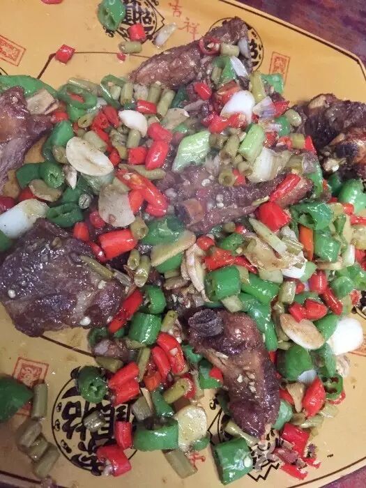 这里有地主庄园,老板顺势研发了地主排骨。抿嘴小排,入口有点甜,回口辣辣的,加了泡豇豆调味有新意。