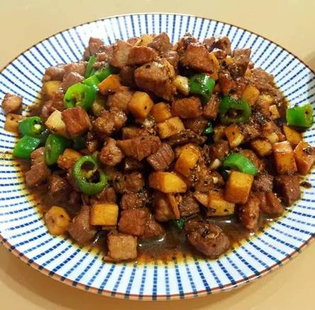 用料:牛里脊、杏鲍菇、杭椒、蒜、蚝油、料酒、生抽、老抽、黑胡椒粒、花生油