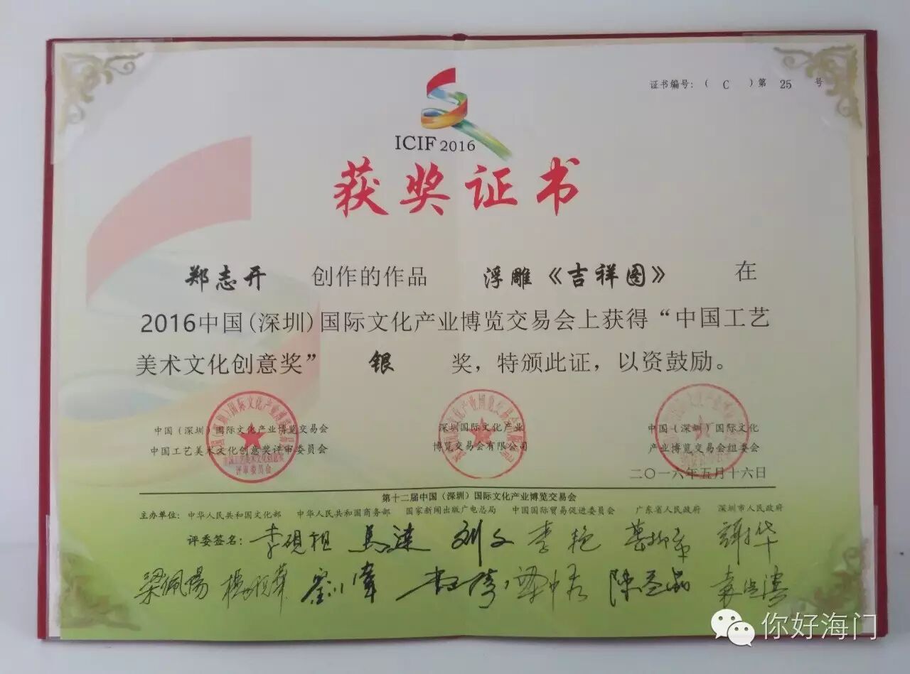 2016年5月深圳文博会中国工艺美术文化创意奖"银奖”