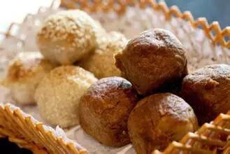 油酥椒盐芝麻陷:熟面粉90g、椒盐5g、白芝麻20g、酥油40g、麦芽糖30g、糖粉50g