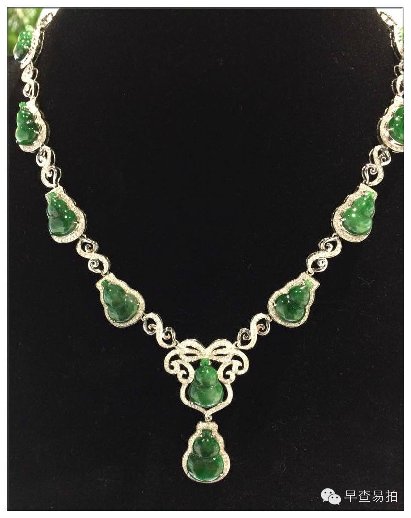 所以这款翡翠满绿葫芦花式项链将这种吉祥寓意与翡翠玉石完美融合,灵气十足,