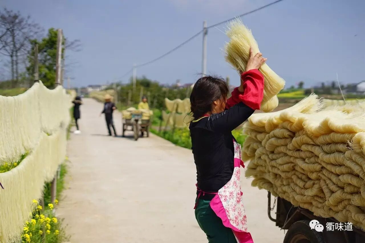 整个村有十几户人家在做,每天要做两万多斤粉干,最多的一户一天要做4000斤,衢州市每天要吃掉坦上村一万多斤粉干,换算成盘的话大概五万多盘。