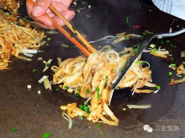 海南的炒粉,大概分两种,一种是借鉴了广式干炒牛河的工艺和口味;另一种则属于“湿炒”,加入芡汁,口感软滑,气味浓香,别具一格。(来源:凤凰网海南频道)