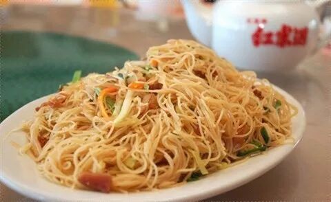 三丝炒米粉是广东东莞著名的小吃,属于粤菜系。米粉用清水渍泡2小时至软捞干;烧油锅,倒入鸡蛋炒散;然后加入剩余的配料炒匀;倒下米粉小火轻炒至软;调入调料炒匀即可。很受广大消费者青睐。