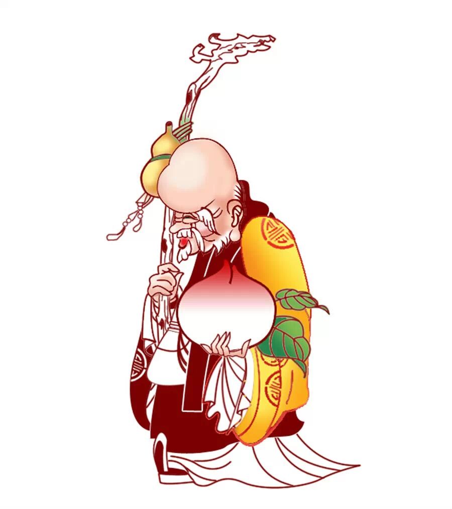 七、鹤发童颜的寿星南极翁,拄着的拐杖上方总是系着一个葫芦,表达对潇游自在生活的追求。同时寓意心态平和才能益寿延年,长寿安康;