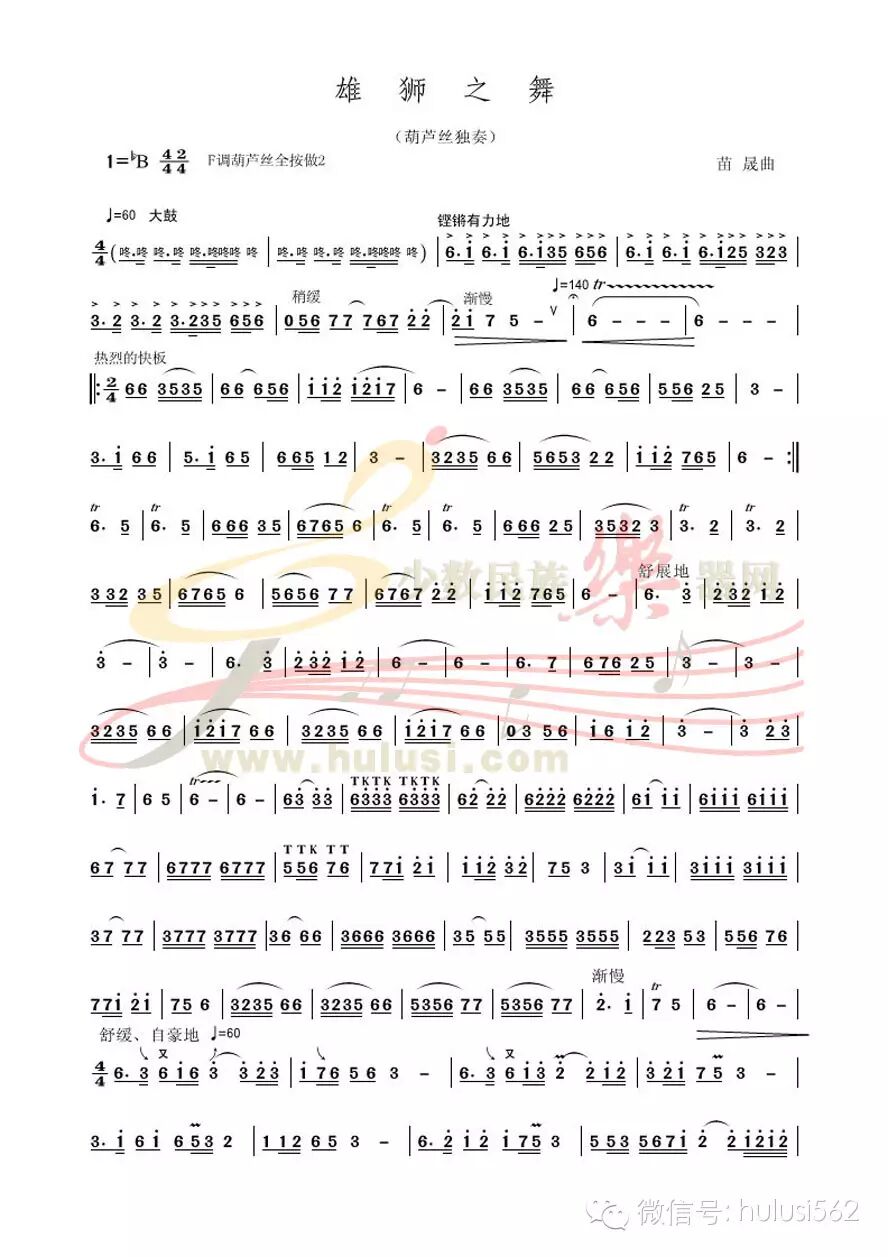 《雄狮之舞》现由我国著名音乐制作人周长军老师精心编配伴奏,并由林荣昌老师弟子【苗晟】老师作曲,由我【刘凤琴】演奏,视频制作由【江海清风】老师完成。此次借马老师论坛发出,是各位老师在新春佳节为广大葫芦丝爱好者,特别是广东的朋友送上的一份厚礼,愿此曲将您带入欢快热闹的舞狮现场,感受广东风格作品的艺术魅力,祝愿葫芦丝在广东发展更加红火,焕发出新的艺术生命力,也愿广大葫芦丝爱好者新春快乐,猴年吉祥,