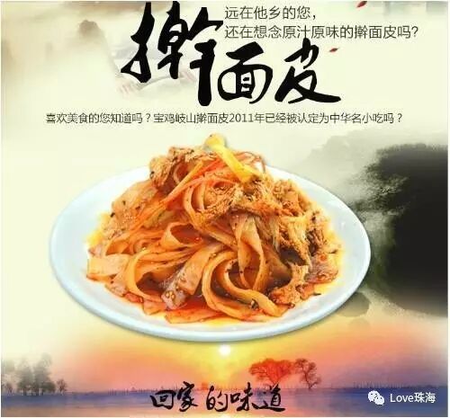 美食:岐山擀面皮、豆花泡馍、西府扯面、岐山臊子面、搅团等。