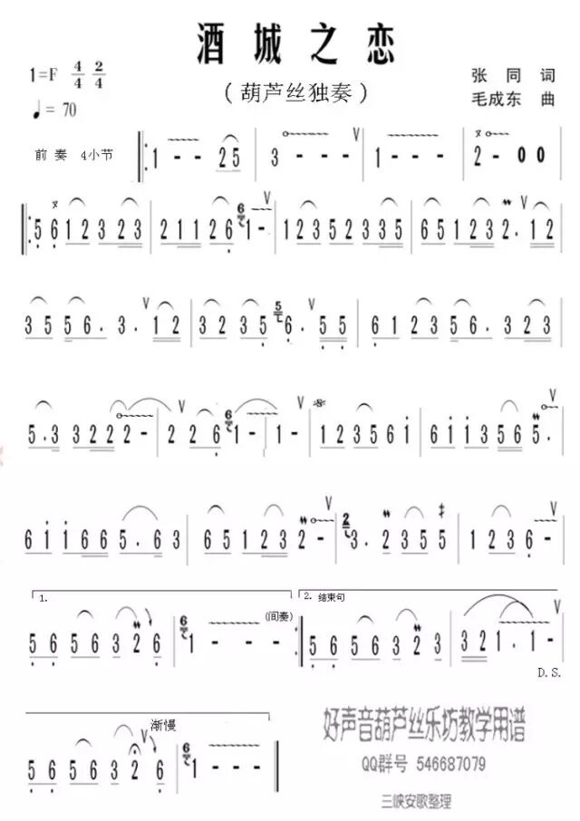 好吧,人家宜昌和枝江的葫芦丝队都在做准备呢,将集体演奏《酒城之恋》。