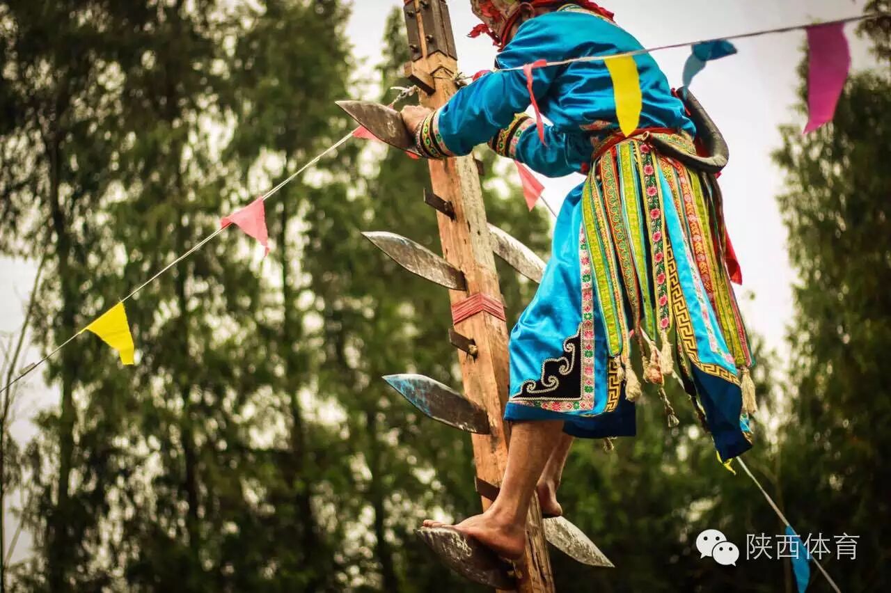 刚刚翻越过“刀山”的小伙子,正在一步一步的走下“刀山”,在青木川古镇,他与师父成为仅有的两位会此技艺的人。