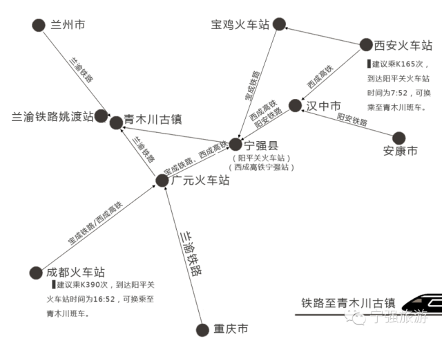 ♦西安-青木川:建议乘K165次火车,到阳平关站下车,转乘阳平关到青木川的班车,参考票价23元;