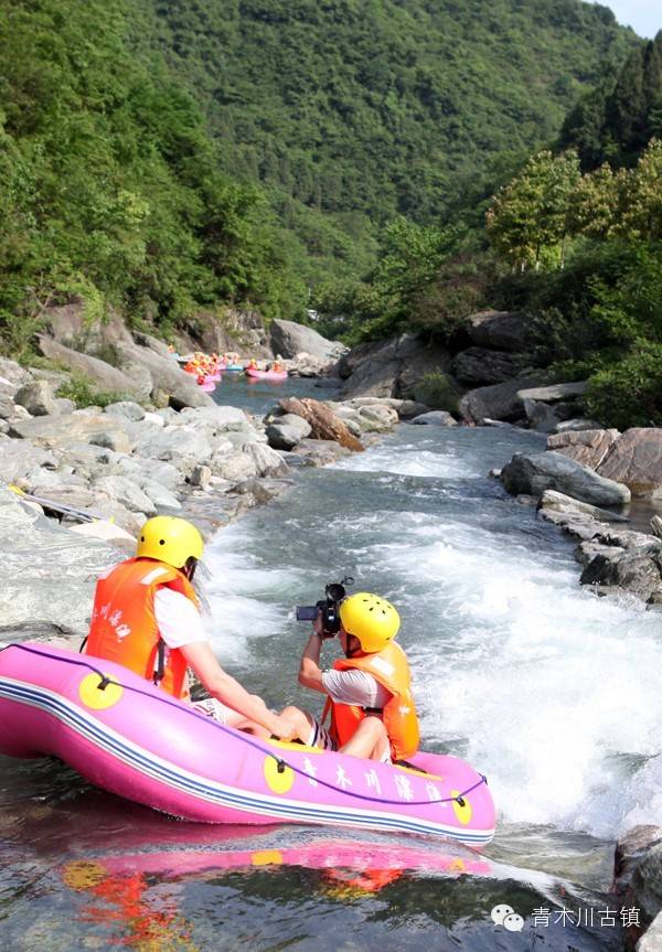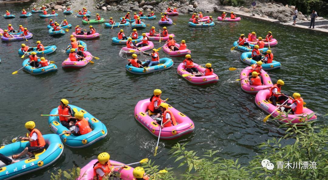 青木川漂流位于陕西省宁强县青木川古镇西侧,漂流河道位于金溪河上。漂流水道全长6公里,单次漂流时长可达90分钟。青木川漂流刺激不失安全,注重每一位游客的客户体验,力争让游客在漂流体验中,能够脱离城市烦恼与喧嚣,百分百的融入大自然的鸟语花香中,享受大自然带来的惬意。