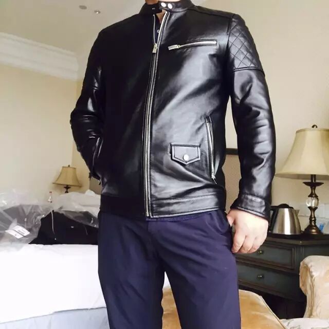 终极百搭强货真皮皮衣!进口澳大利亚纳帕工艺小羊皮,皮质均匀,无破刀,质感柔软而且非常厚实,行内话叫做摸上去特别有“肉”感!此货出自山东青岛,国内终极皮衣制造商,据了解去年底就已经有合作此款,很多影视明星都有过知名奢饰品高定上身款,为下一年热炒品牌单品!此款陆毅款就是此皮衣生产商和LV所代工的产品试销样!电视剧开拍前所开款的几十件试销样品!现在电视剧已经热播完,国内贵子还暂没上架,厂里面找到我们低价销售!因为拉头,第一次试销样拉头是欧版方头,而专柜样板是葫芦头!这就导致此款没办法上实体柜子!我们才有幸品鉴到这几十个牛货!