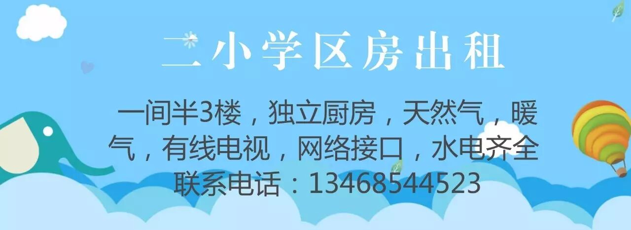 ▼ 二小学区房【出租】房子结构:一间半(独立厨房,天然气,暖气,有线电视,网络接口,水电齐全)楼层:3楼 (联系电话:13468544523)